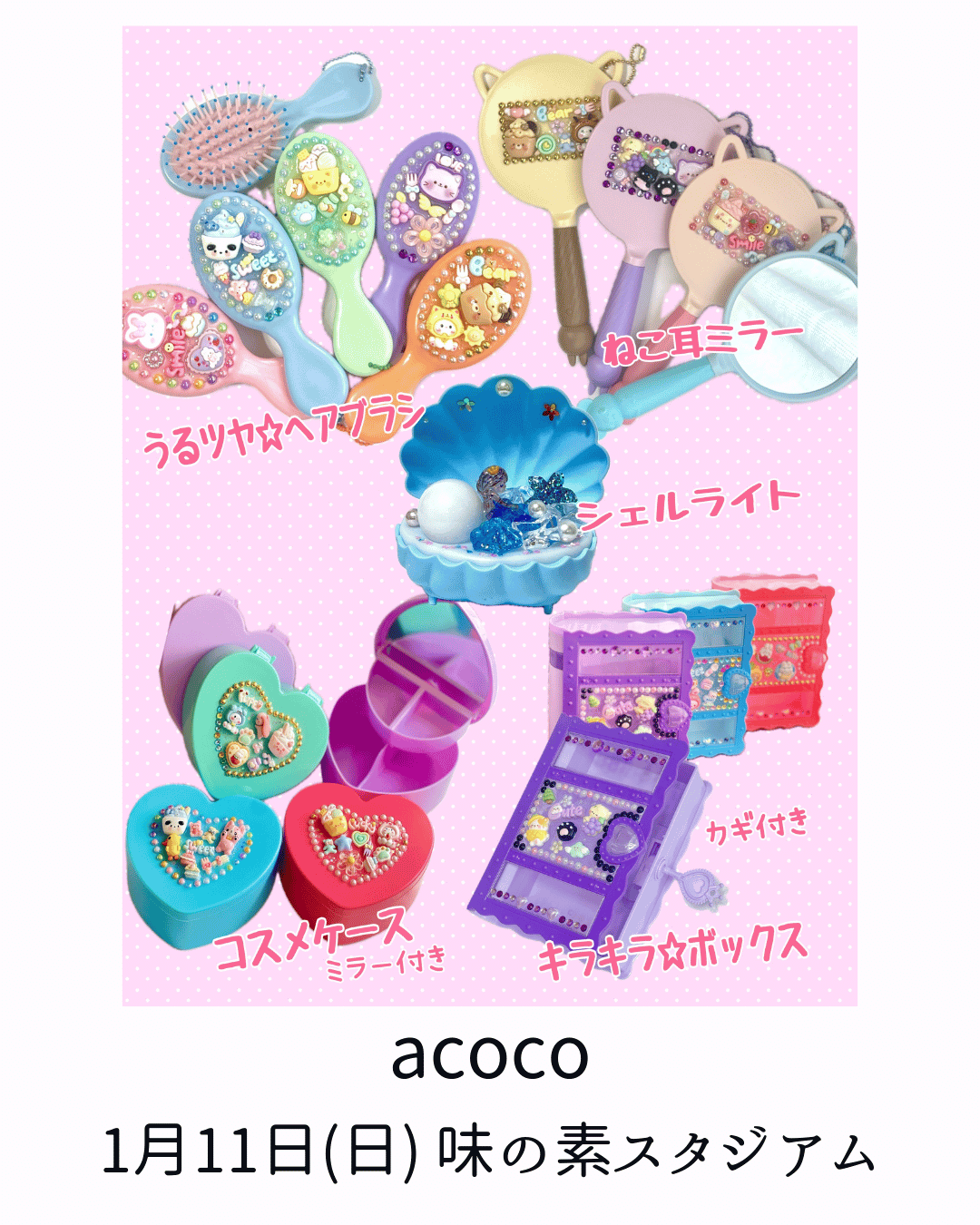 13件のハンドメイド作家さんと3件のフード系マルシェが出展予定です。