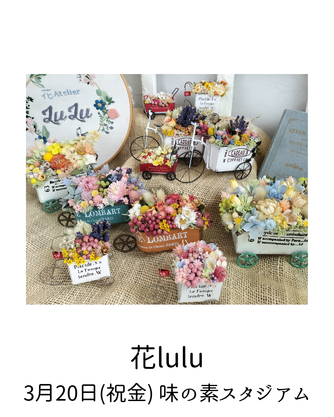 10件のハンドメイド作家さんと3件のフード系マルシェが出展予定です。